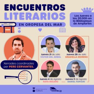 El municipio de Oropesa del Mar se sumerge en su verano más cultural. Y es que además de ofrecer a vecinos, vecinas y visitantes una amplia variedad de eventos para el ocio y disfrute, el Ayuntamiento, a través de la biblioteca municipal, fomenta las actividades culturales y lo hace con el primer ciclo de encuentros y presentaciones literarias que se extenderán durante los meses de julio y agosto.