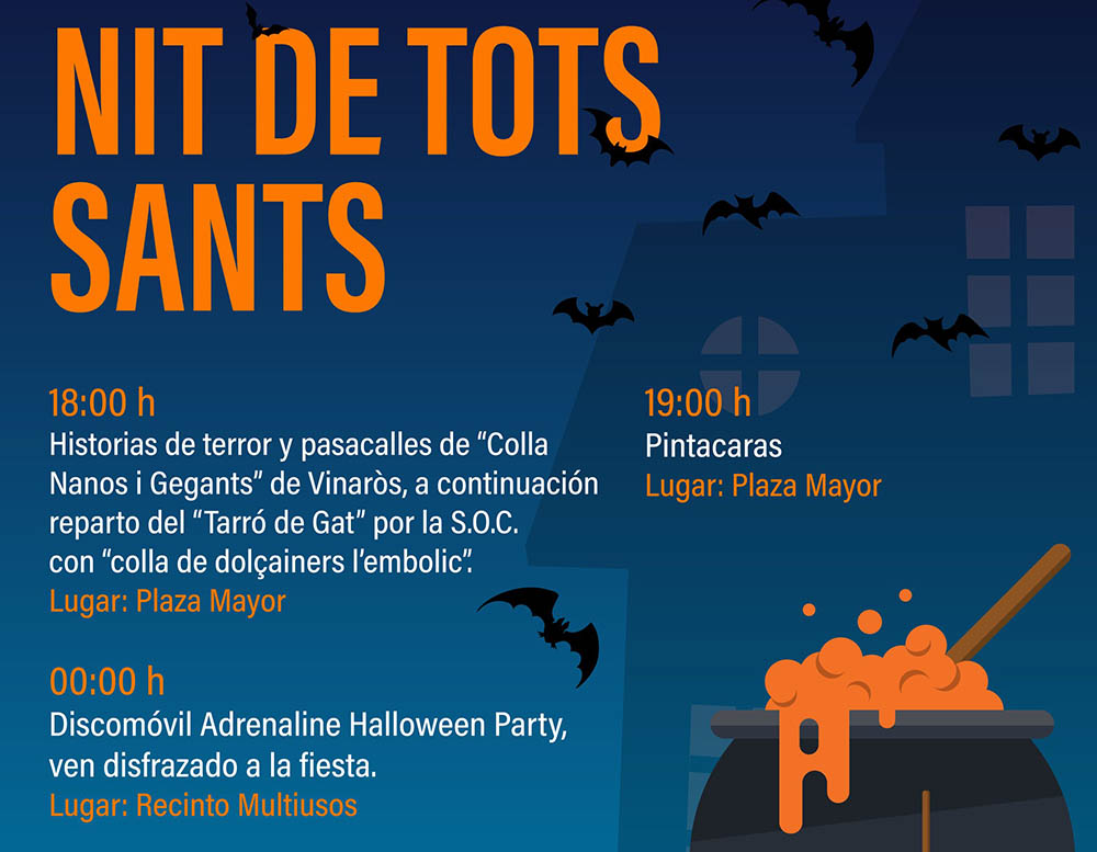 La actividad central llegará el 31 de octubre con una amplia agenda de actos que se desplegará en la céntrica playa Mayor y comenzará con una tarde de historias de miedo y juegos alrededor de los monstruos de la mitología valenciana. Posteriormente, se celebrará el pasacalles de la colla Nanos i Gegants de Vinaròs, que colmará el centro de fiesta.