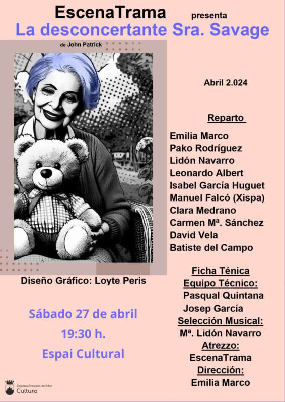 El sábado, 27 de abril, a las 19:30 horas, la compañía EscenaTrama presentará la obra ‘La desconcertante señora Savage’