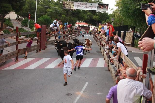 Oropesa del Mar ha iniciado hoy los encierros con motivo de las fiestas patronales en honor a San Jaime. El primer encierro se ha celebrado a las 13:00h. con toros de la ganadería de Alberto Garrido. Ha sido una carrera rápida y sin incidentes.