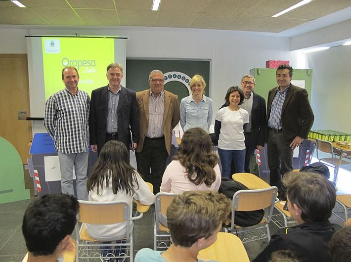 El alcalde, Rafael Albert, junto a diferentes concejales y representantes de las empresas colaboradoras ha visitado una de las charlas impartidas en el instituto, donde ha animado a los alumnos de primaria a seguir reciclando y colaborando en el mantenimiento de la limpieza del municipio.