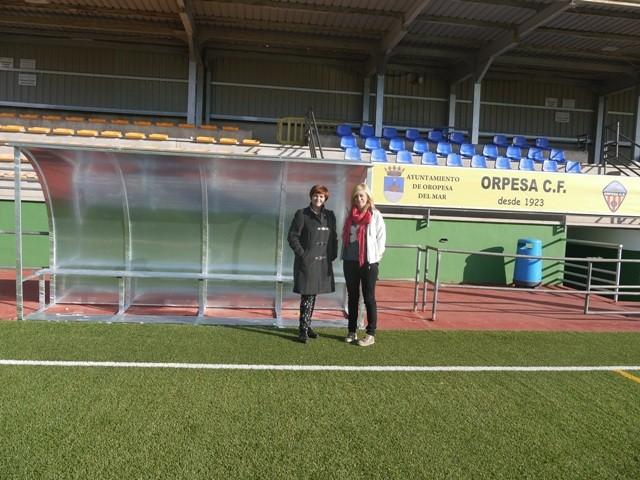 La concejala de Deportes, Sonia Bellés, acompañada de la presidenta del Oropesa C.F., Mabel Moliner, ha visitado las instalaciones del campo de fútbol municipal para constatar las mejoras que el Ayuntamiento de Oropesa del Mar está llevando a cabo en el recinto deportivo.