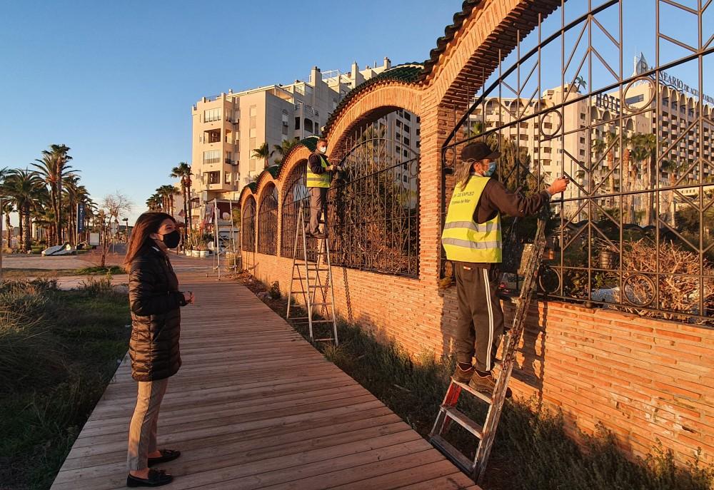 Con una inversión cercana a los 15.000 euros, los trabajos se centran en “la reparación de todos aquellos desperfectos existentes en este espacio, como es el caso del vallado, el parque infantil, el pintado de las rejas, la mejora de las pasarelas de madera y la colocación de papeleras”, explica la alcaldesa, María Jiménez.