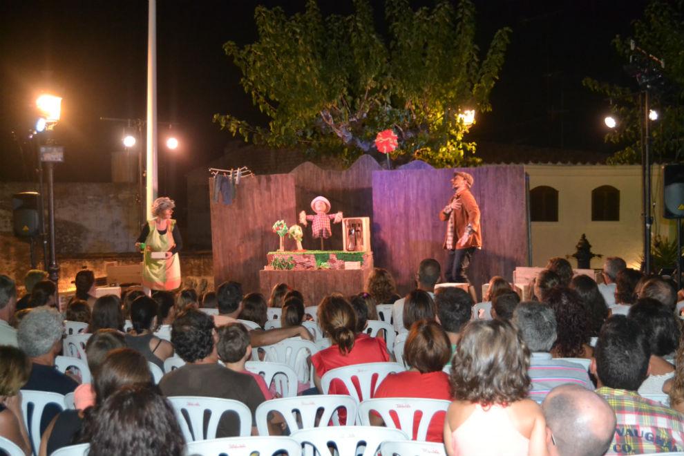 La plaza de la Iglesia acogió en la noche de ayer la representación de la obra 'El huerto de los Pitrocs', de la compañía Butai Producciones. Este acto forma parte del ciclo de actuaciones que la Concejalía de Cultura ha programado todos los miércoles de verano en dicho emplazamiento, dirigidas al público infantil. El espectáculo, seguido por un numeroso grupo de niños, narraba la historia de un espantapájaros, un agricultor y unos pájaros que echaban a perder la cosecha. La concejala de Cultura, Mari Carmen Taulé, estuvo presente en el evento.