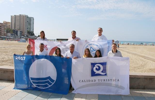 Oropesa del Mar ha izado hoy las banderas que han sido otorgadas a sus playas y al Club Náutico, entregadas por distintas instituciones a lo largo de este mes. Concretamente, la localidad recibió por parte de la Agència Valenciana de Turisme siete banderas de Qualitur, en Amplàries, Morro de Gos, La Concha, cala Orpesa la Vella, cala del Retor, Platgetes de Bellver y la Renegà; cuatro banderas azules para las playas de La Concha, Platgetes, Morro de Gos y Amplàries, una para su puerto deportivo y otra para el Sendero Azul Paseo del Faro; y la Q de Calidad para La Concha, concedida el lunes en Madrid por el Instituto para la Calidad Turística Española (ICTE), en lo que significa el principal distintivo español de calidad en las playas.