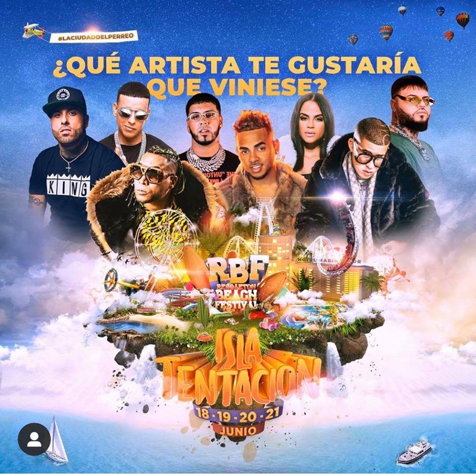 Ya se ha iniciado la cuenta atrás para el Reggaeton Beach Festival (RBF) Isla Tentación, bajo la marca de ‘La ciudad del Perreo’ que se celebrará del 18 al 21 de junio de 2020 en el complejo turístico Marina d’Or ubicado en Oropesa del Mar con la confirmación de los dos primeros artistas que son Daddy Yankee y Farruko.
