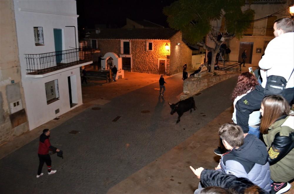 De otro lado, la localidad celebró anoche la primera de las sesiones de 'bous al Ravalet', una tradición que se recuperó en el 2019 después de 25 años. Tanto locales como visitantes se reunieron en la calle San Jaime para disfrutar con las vaquillas y dos toros embolados de la ganadería de Miguel Parejo. Un acto que estuvo amenizado por la música del grupo Paradita Flamenca, que sorprendió al público con temas de lo más conocidos en la denominada y novedosa 'Noche Flamenca' que llega por primera vez estas fiestas de Sant Antoni.