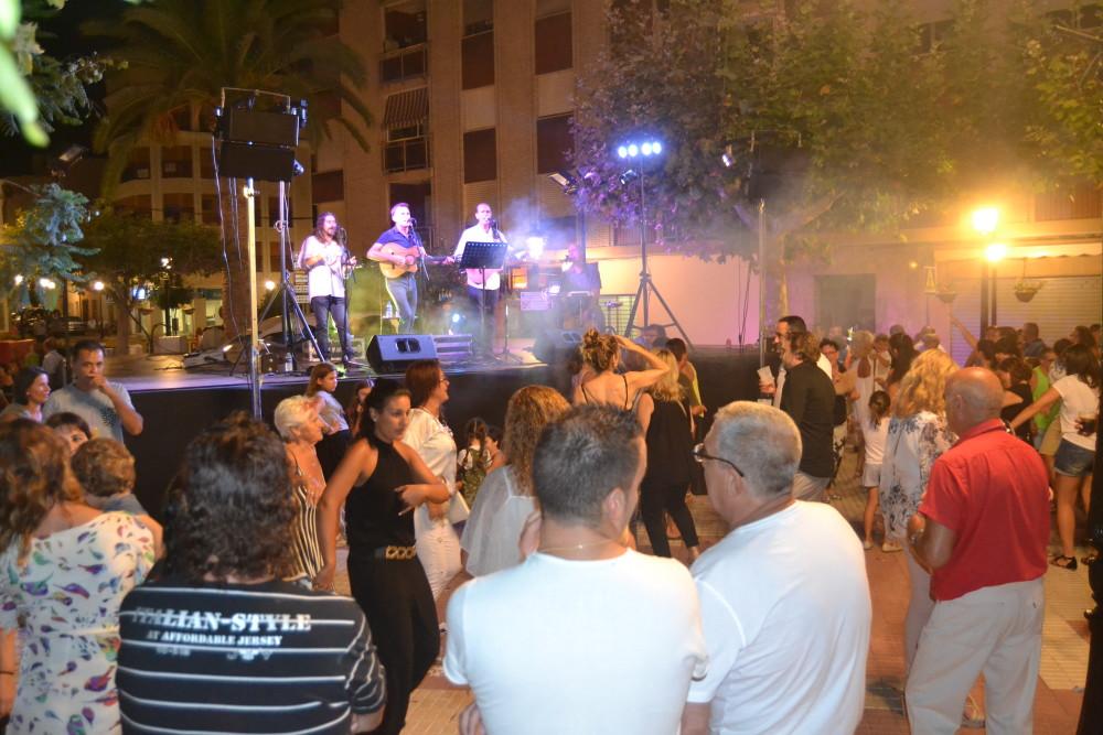 La plaza Mayor de Oropesa del Mar fue el escenario en la noche de ayer del concierto de Los Makis, dentro de las actuaciones programadas con motivo de las fiestas de San Jaime. El grupo de Onda, con su animada propuesta de flamenco y sevillanas, puso a bailar a vecinos y turistas al ritmo de canciones clásicas y modernas, que iban desde Los Chichos hasta ‘Despacito’.