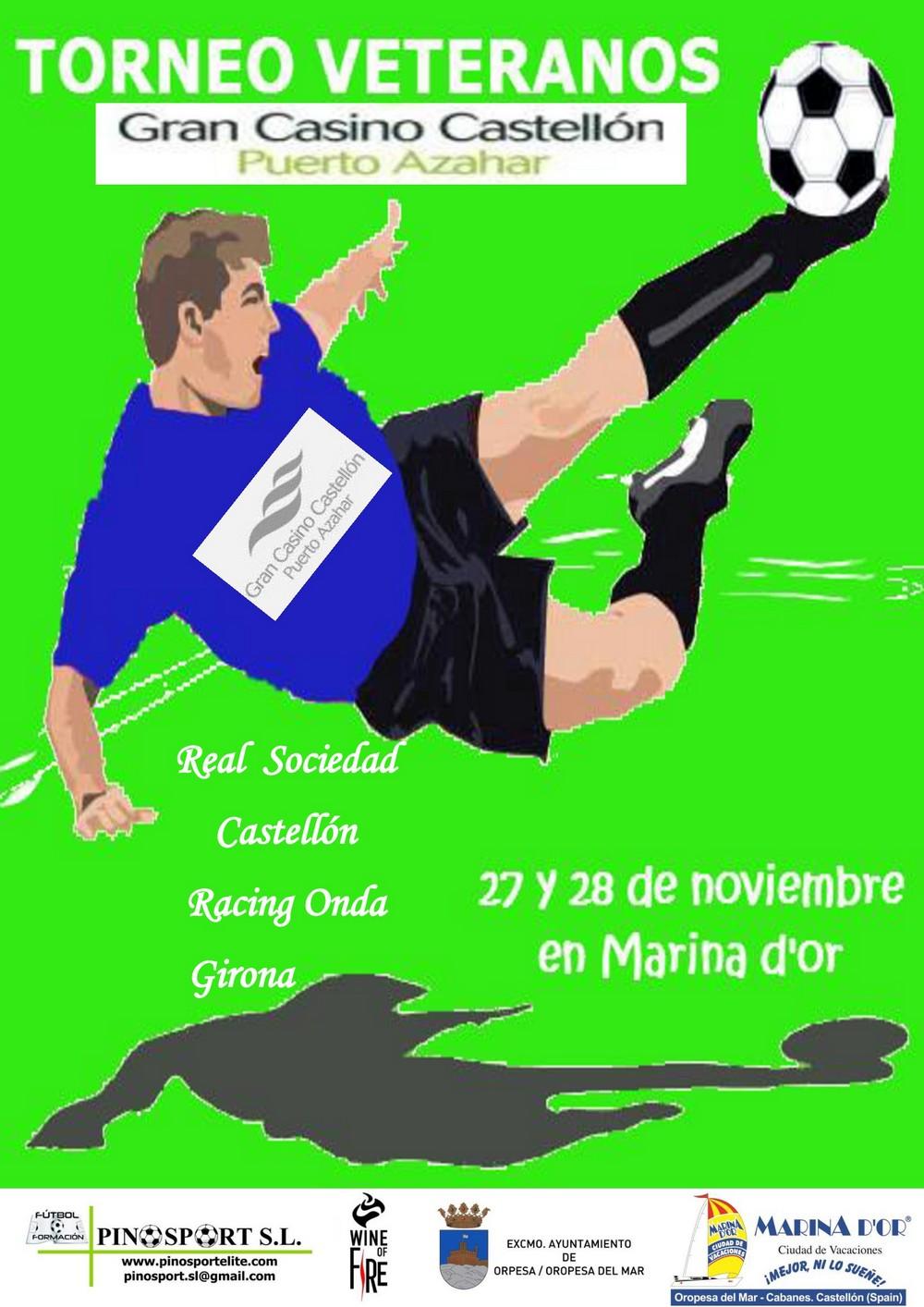 Oropesa del Mar acogerá los próximos días 27 y 28 de Noviembre el Torneo de Fútbol “Gran Casino de Castellón”. Un evento futbolístico de gran relevancia, organizado por PINOSPORT, que reunirá en el campo a jugadores emblemáticos de la liga española. El torneo se celebrará en Marina d'Or y en él participarán la Real Sociedad, el Girona, el Castellón y el Racing de Onda.