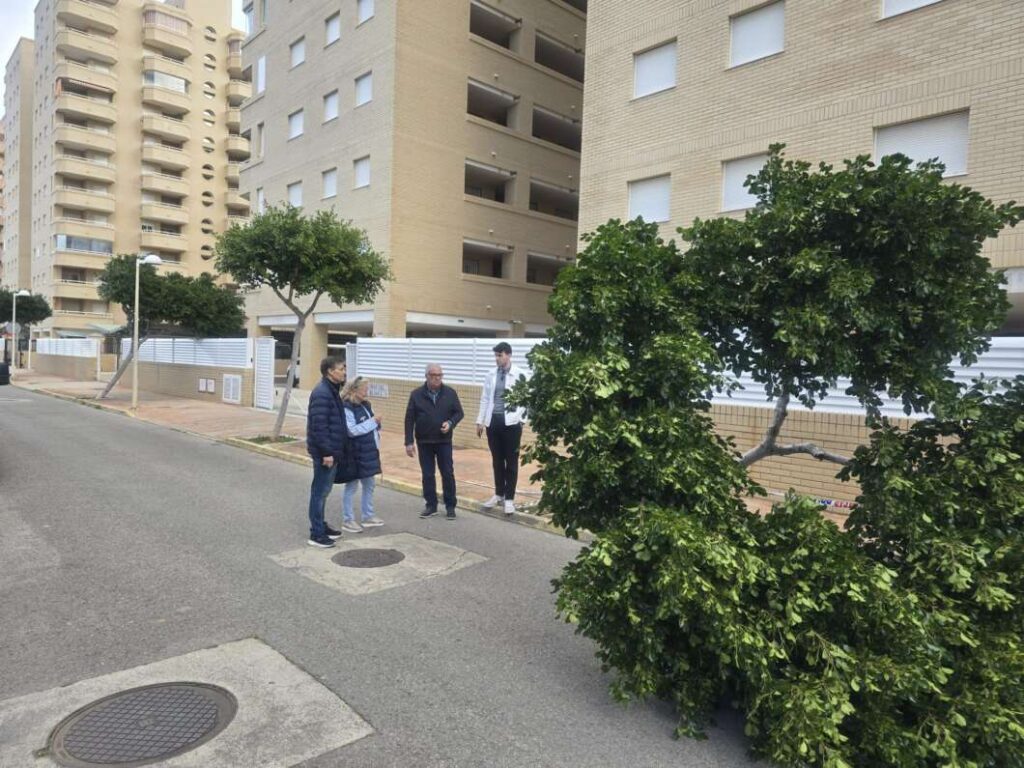 El alcalde de Oropesa del Mar, Rafael Albert, acompañado por concejales del equipo de gobierno municipal, se ha desplazado esta mañana a diversas zonas del municipio afectadas por el fuerte episodio de viento registrado en las últimas horas, con el objetivo de supervisar personalmente los daños y coordinar las actuaciones necesarias para restablecer la normalidad lo antes posible.
