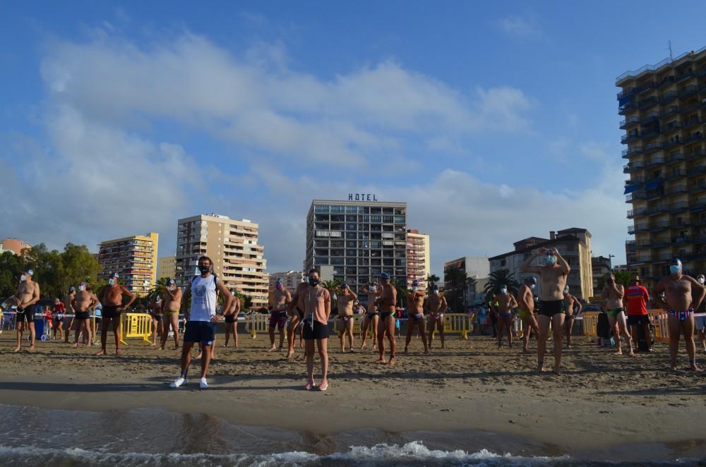 La localidad de Oropesa del Mar ha vuelto a retomar su actividad deportiva. El municipio ha celebrado este sábado la Travesia Platges d'Orpesa, el primer evento deportivo desde que finalizó el estado de alarma que ha reunido desde bien temprano a 240 deportistas que se han concentrado en la playa de La Concha.