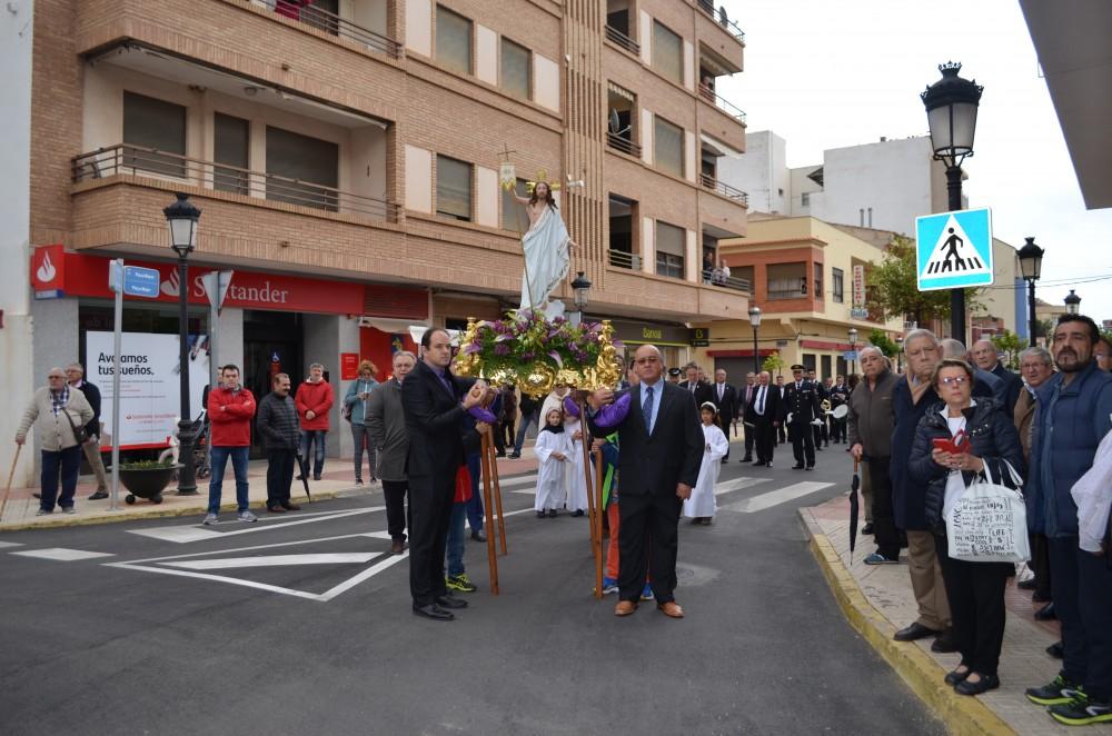 Este Domingo de Resurrección ha continuado en la parroquia de San Jaime, donde han entrado las dos imágenes tras el recorrido de vuelta. El párroco local, José Aguilella, ha sido el encargado de oficiar la misa de Pascua, en la que ha explicado a los asistentes el significado de este día tan especial para todos aquellos que abrazan el cristianismo.