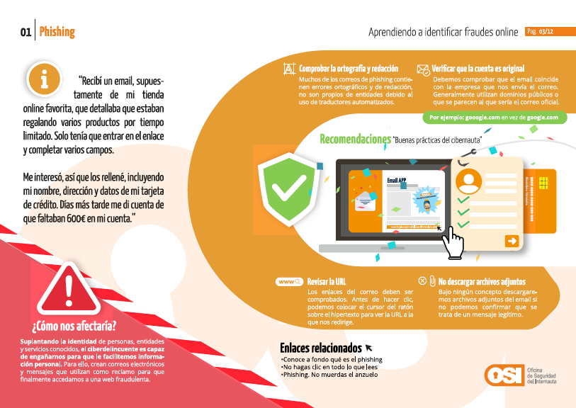 La Oficina de Seguridad del Internauta (OSI), dependiente del Instituto Nacional de Ciberseguridad (Incibe), ha publicado una guía online, que recoge varios casos prácticos para que el usuario pueda detectar y protegerse de los fraudes más comunes que sacuden la red en estos momentos.