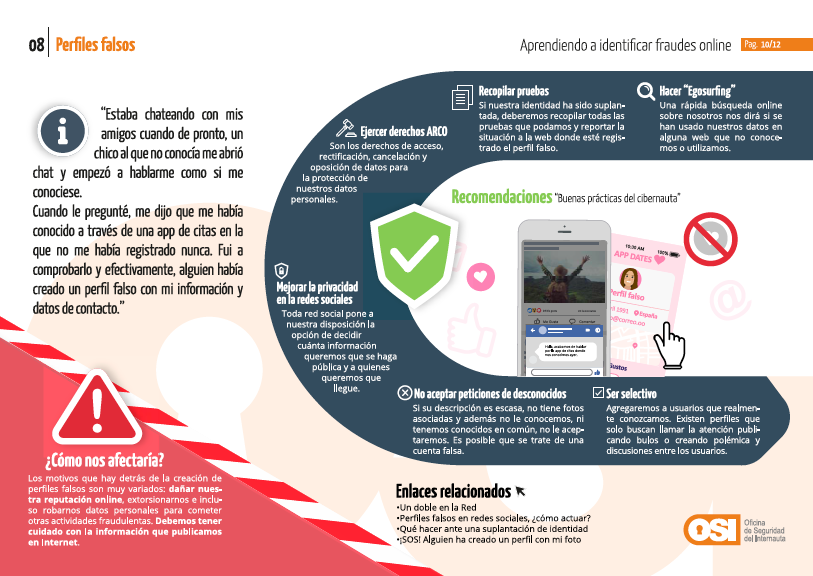 Crear un perfil falso en internet es relativamente fácil. Una dirección e correo, una foto que puede ser propia o ajena, unos datos… ¿Quién va a saber que el usuario no es quien dice ser?. Los perfiles falsos se pueden denunciar, pero lo mejor es poder protegerse y ser prudente antes de pasar datos personales a personas desconocidas.