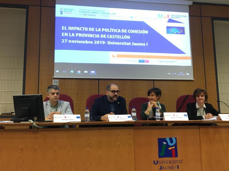 El diputat provincial de Promoció Econòmica, Ocupació i Internacionalització, Pau Ferrando, ha inaugurat la jornada sobre l'impacte de la Política de Cohesió a les comarques de Castelló, organitzada pel centre Europe Direct de la Diputació a la Universitat Jaume I i cofinançada per la Unió europea, dins la campanya #EUinMyRegion de la Comissió Europea.