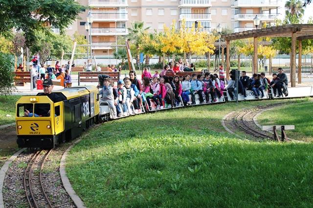 Alrededor de 200 niños de entre 4 y 7 años han visitado esta mañana el Parc del Trenet del Ferrocarril de Farja de Benicàssim, donde han podido disfrutar del ferrocarril en miniatura.