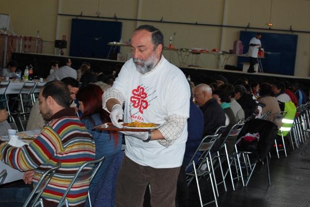 La parroquia de Santo Tomás de Villanueva ha movilizado a los vecinos de Benicasim para organizar este viernes una comida navideña para las cien familias que atiende Caritas. El Ayuntamiento cede el polideportivo municipal, varios comercios han aportado regalos, los hoteles bebidas, los catequistas han hecho cocas, y diversas entidades, como las asociaciones de amas de casa y de jubilados, también se han implicado. El menú ha consistido en una paella monumental, acompañada de actividades festivas como cantos de villancicos y una rifa.