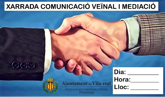 Las Concejalías de Participación Ciudadana y Proximidad, dirigidas por el edil Xavi Ochando y Sabina Escrig respectivamente, han organizado para este mes de octubre charlas informativas de comunicación y mediación dirigidas a las asociaciones de vecinos y otro tipo de entidades cívicas de la ciutat con la intención de dar algunas pautas para mejorar el diálogo y la convivencia en los barrios.