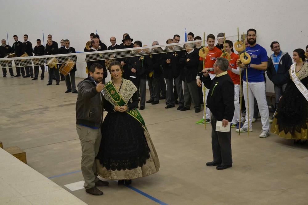 A este encuentro del tradicional deporte valenciano acudieron la Reina de Fiestas, que realizó el saque de honor de la partida, el concejal de Deportes, Enric Porcar, y César Beltrán, presidente del Club Almassora, que fue homenajeado en los instantes previos a que se desarrollara el encuentro.
