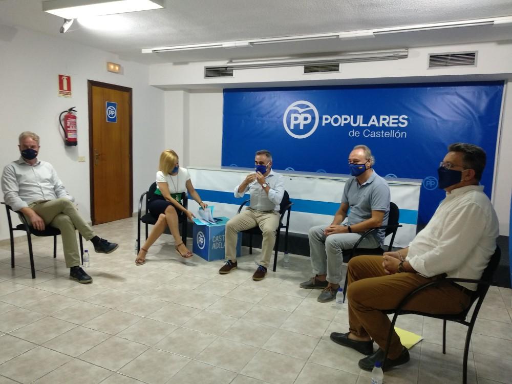 El presidente provincial del PP, Miguel Barrachina, ha estado acompañado por Óscar Clavell, diputado nacional, y los senadores Salomé Pradas, Vicente Martínez y Alberto Fabra para evaluar la gestión del Gobierno de Pedro Sánchez y cómo ha afectado esta en la provincia de Castelló.