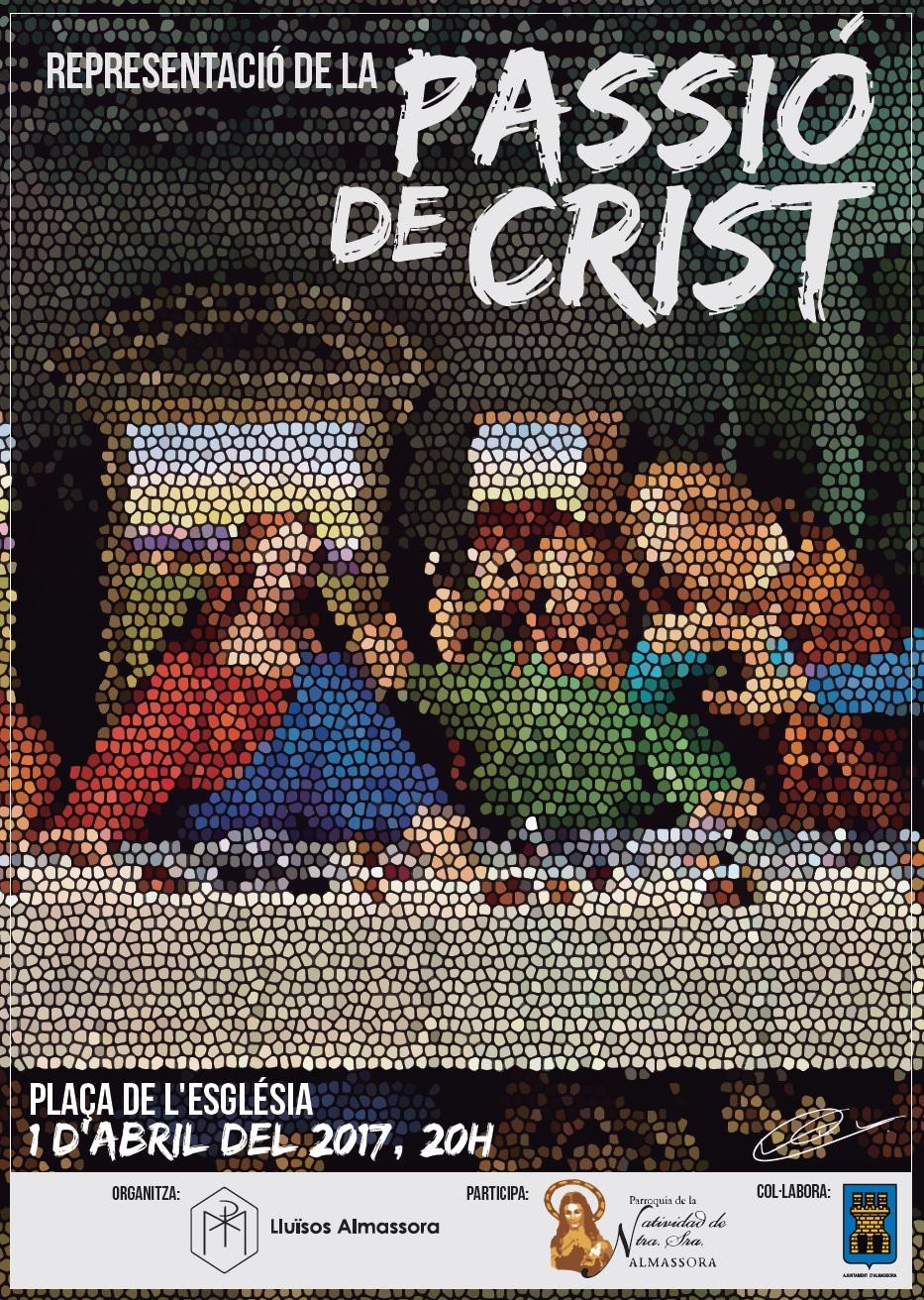 L'escenificació començarà a les 20.00 hores en la plaça de l'església de la Nativitat, on Lluïsos Almassora situarà fins a tres escenaris. Posteriorment, l'acció es traslladarà al carrer La Llum, amb la representació de l'escena de l'Hort de les Oliveres, i el carrer Major i des d'allí fins a la plaça Major, on tindrà lloc la recreació de la crucifixió.