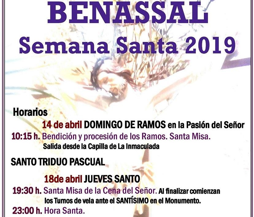 Del 14 al 21 d'abril Benassal viurà amb passió les activitats organitzades amb motiu de la Setmana Santa. Així, el dia 14, Diumenge de Rams, a les 10.15h serà la benedicció i processó dels Rams i la santa missa. La processó partirà de la Capella de la Immaculada.