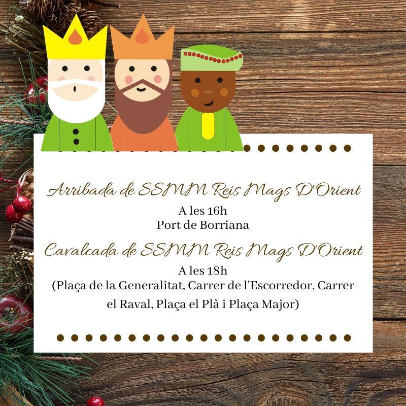 Borriana es prepara per a rebre l'arribada dels Reis Mags d'Orient la vesprada del 5 de gener. Els Reis arribaran en vaixell i desembarcaran al port per a posteriorment desfilar en la tradicional cavalcada des de la plaça de la Generalitat.