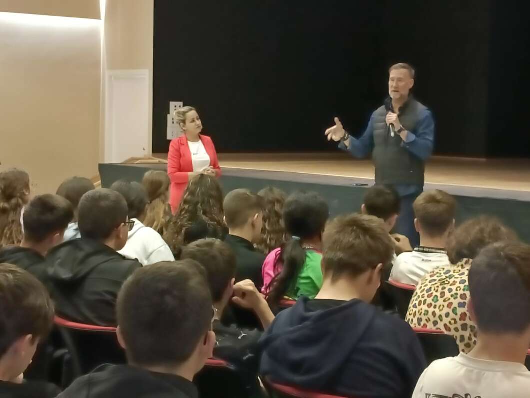 Previamente, esta mañana, Pedro García Aguado y Nerea López han llevado a cabo una charla motivacional titulada "Viaje de aprendizaje" destinada al alumnado de segundo y tercero de ESO, PDC y FP Básica del IES Almenara. En ella, basándose en la vida y trayectoria de García Aguado, han hablado del principio de realidad, la diferencia entre éxito y fracaso, y de las claves para gestionar la adversidad. Además, también han querido diferenciar entre las habilidades individuales que suman (talento, capacidad de esfuerzo, tolerancia a la frustración) y las actitudes que restan (egoísmo, negatividad).