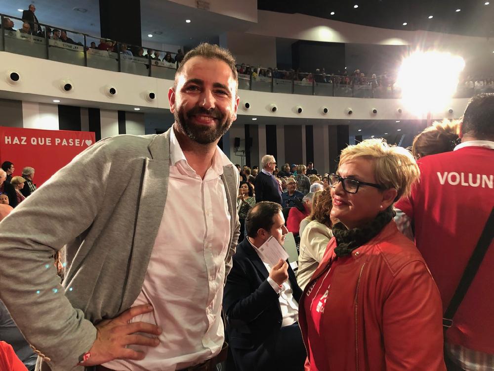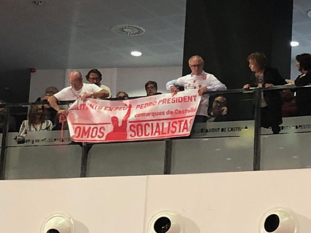 Con el salón repleto, y las banderas del PSOE ondeando al aire, había quien guardaba celosamente su asiento desde horas antes y no se movía por miedo a perderlo.