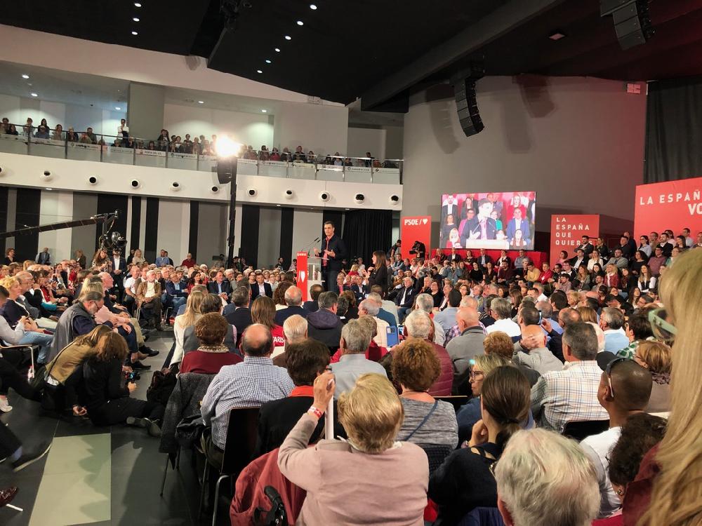 Y así, el público se puso en pie, Sánchez pidió el voto y culminó el parlamento con abrazos, aclamaciones, y aplausos.