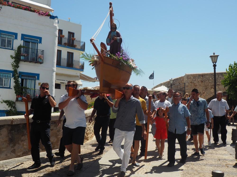 Peñíscola ha celebrado esta mañana la festividad de San Pedro con la tradicional misa de marineros, a la que han asistido representantes del sector, el Cabildo y representantes de la 'Cofradía de Pescadores Sant Pere' de la ciudad. Tras la celebración litúrgica se ha iniciado la procesión del patrón de los marineros por las empedradas calles de la ciudad en la que han participado la Reina de las Fiestas 2018, Lidia Oms, la Corte de Honor, el Presidente de la Diputación Provincial, Josep Martí, y los miembros de la Corporación Municipal con el Alcalde, Andrés Martínez, a la cabeza.