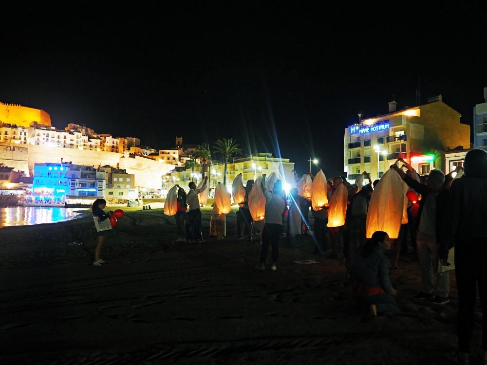 La visita finalizó en la Playa Norte, donde las parejas encendieron velas y farolillos como símbolo de amor.
