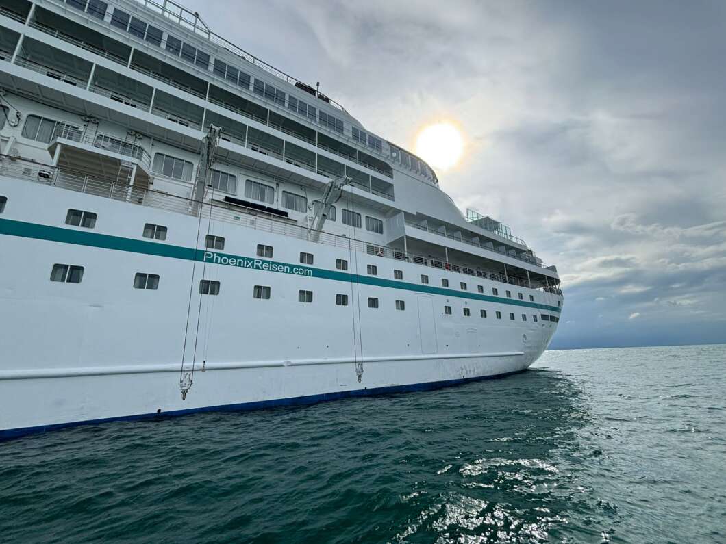Un nuevo crucero, de la compañía Phoenix Reisen, ha llegado a la costa de Peñíscola con más de 700 pasajeros. El buque Amera, de 209 metros de eslora, 29 de manga y 7 de calado ha llegado a la localidad castellonense, donde han desembarcado los cruceristas, cuyo principal país de procedencia es Alemania.