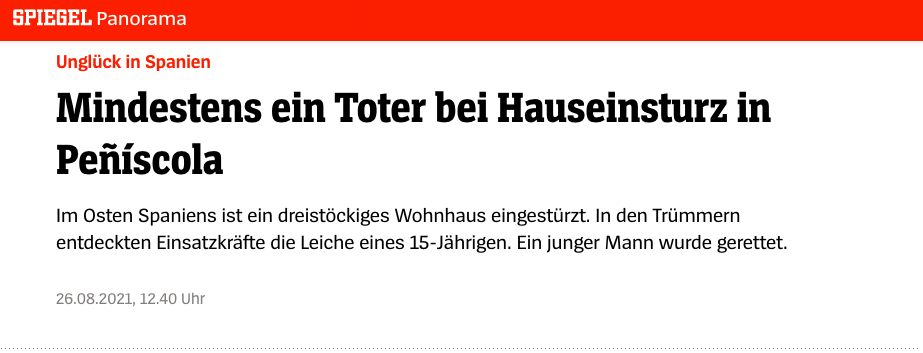 El triste suceso del derrumbe del edificio de Peñíscola en el que ya hay una víctima mortal confirmada y otra persona desaparecida ha ocupado las portadas de varios periódicos del ámbito internacional y ha supuesto una noticia de alcance en muchos países directamente relacionados con la localidad del Baix Maestrat por el turismo.