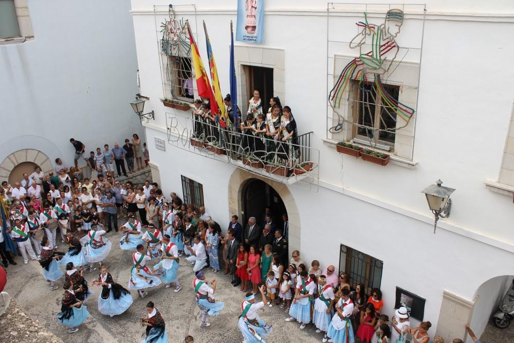 Peñíscola ha celebrado hoy el primer día dedicado a la Patrona, la Virgen de Ermitana. Esta mañana ha tenido lugar la primera actuación del Grup Cultural de Danses, acompañado por la Asociación Musical Virgen de Ermitana, la dulzaina y el tamboril. Los bailes han centrado todas las miradas en la Plaza del Ayuntamiento, donde se encontraban la Reina, su Corte de Honor, las autoridades locales, vecinos y visitantes.