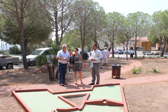 Según la concejala Lupe Roig, que ha querido mostrar el estado de las tareas al alcalde, Andrés Martínez, y al edil de Urbanismo, Romualdo Forner, “se ha limpiado la zona, replantado los elementos de jardinería, reparado y pintado el minigolf, además de incorporado bancos y sillas para el descanso”.