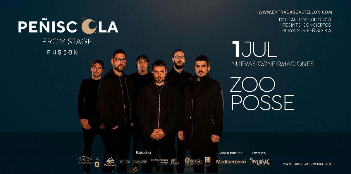 Un día antes, el 1 de julio a las 23.00h, la banda de Gandía ZOO Posse demostrará por qué es uno de los grupos del momento. Su estilo, caracterizado por la fusión de rap y música electrónica con ritmos latinos y mediterráneos, hacen de ellos un conjunto atrevido y provocador, gracias a sus letras cargadas de contenido social y político. En muy poco tiempo, han logrado ganarse el respeto del público nacional e internacional. El nivel de su directo y sus composiciones ha consolidado el proyecto de este colectivo musical, a medio camino entre la reivindicación valenciana y la electrónica mundial. El escenario de Peñiscola From Stage estará preparado para recibir el esperado tercer disco de la banda valenciana, actualmente uno de los más vendidos.