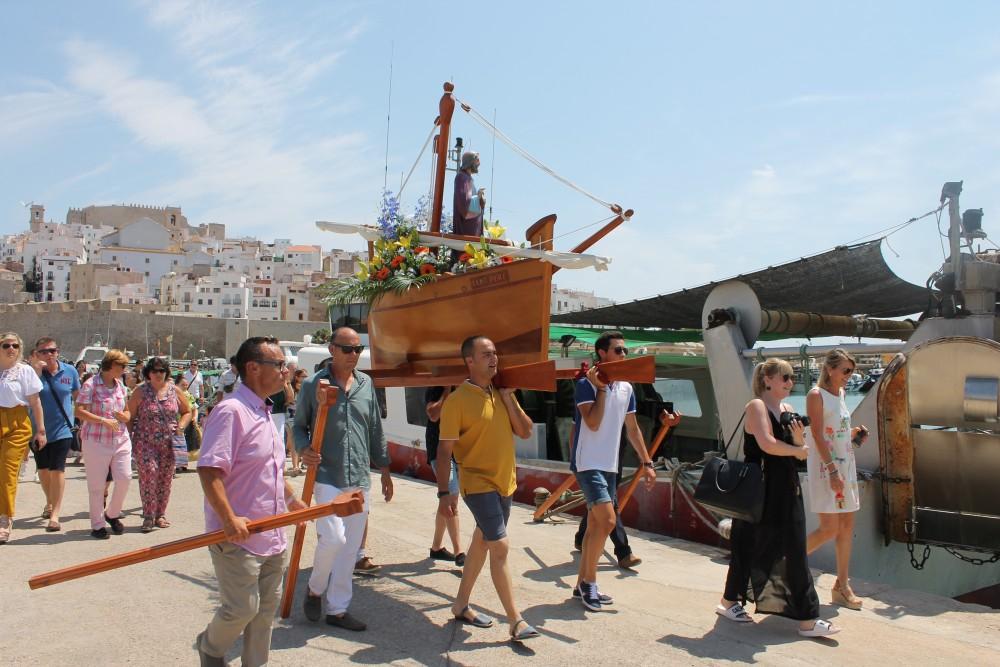 Tras la tradicional misa ha dado comienzo la procesión hasta el puerto pesquero, donde se ha celebrado, como se viene haciendo desde 2011, un homenaje a las 27 víctimas del temporal marítimo que azotó la costa de la provincia en 1911. Acto seguido los asistentes han subido a las diferentes embarcaciones para realizar el desfile por mar que rodea la península rocosa y acompañar a la imagen de Sant Pere.
