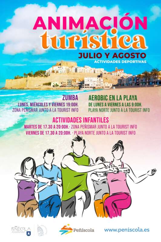 Se trata de sesiones de Zumba y Aerobic, que se llevan a cabo tanto en la zona de la oficina de información turística central, cerca de la ciudadela; como en la extensión turística de Peñismar, en la costa norte.