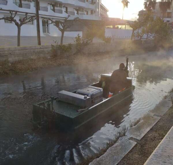 La concejalía de Medio ambiente del Ayuntamiento de Peñíscola, a través de los operarios de la Brigada Municipal de Obras y Servicios, está trabajando en las tareas rutinarias de limpieza con embarcación de la zona húmeda del Ullal de l'Estany y el marjal.