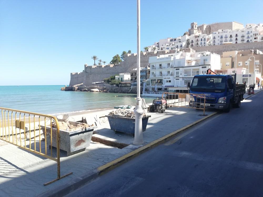 En el marco del programa de mejora de la eficiencia energética del alumbrado público aprobado por el Ayuntamiento de Peñíscola, esta semana se han iniciado los trabajos en la Avenida de la Mar. Concretamente se está trabajando en el desplazamiento y sustitución de farolas y luminarias, así como en la reparación de todo el sistema de canalización. Con esta actuación se reducirá el consumo energético y se ganará en intensidad lumínica, además de despejar la zona de paseo, con el desplazamiento lateral de las propias farolas que contarán con un brazo extendido para alumbrar todo el perímetro. Los trabajos en esta zona se extenderán a lo largo del mes de octubre y a éstos se sumarán las mejoras en la zona de las murallas de la ciudadela, así como en la zona del suburbano. La empresa concesionaria del servicio en el municipio, Clece, ejecuta los trabajos dentro del acuerdo contractual para el mantenimiento y mejora de infraestructuras.