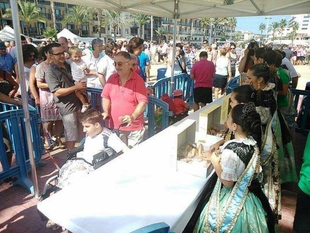 La Reina y Damas de los festejos los han repartido frente a la oficina de información turística.