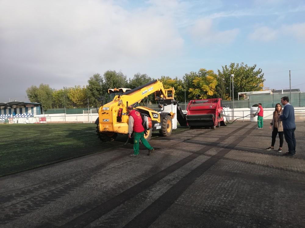En estos momentos, la práctica totalidad del césped que había previamente está ya retirado, y mañana se comenzarán las tareas de acondicionamiento del pavimento e instalación del césped artificial nuevo.