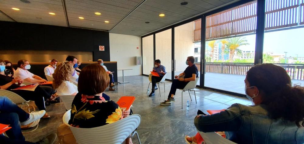 El conseller d'Educació, Cultura i Esport, Vicent Marzà, acompanyat pel delegat de l'Institut Valencià de Cultura a les comarques de Castelló, Alfonso Ribes s'han reunit amb alcaldes i responsables culturals de les localitats del Baix Maestrat per explicar-los de primera mà la nova línia d'actuació en matèria cultural que Cultura de la Generalitat ha dissenyat per a reforçar l'oferta cultural en la comarca mitjançant l'Auditori Palau de Congressos de Peníscola.