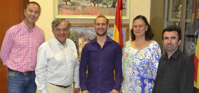 El alcalde de Burriana, José Ramón Calpe -acompañado por el concejal de Cultura, Enrique Safont- recibió a última hora de la tarde de ayer al nuevo director titular de la Banda Simfònica y la Banda Jove de l'Agrupació Filharmònica Borrianenca, Pere Vicent Caselles Mulet, Pere Vicalet.