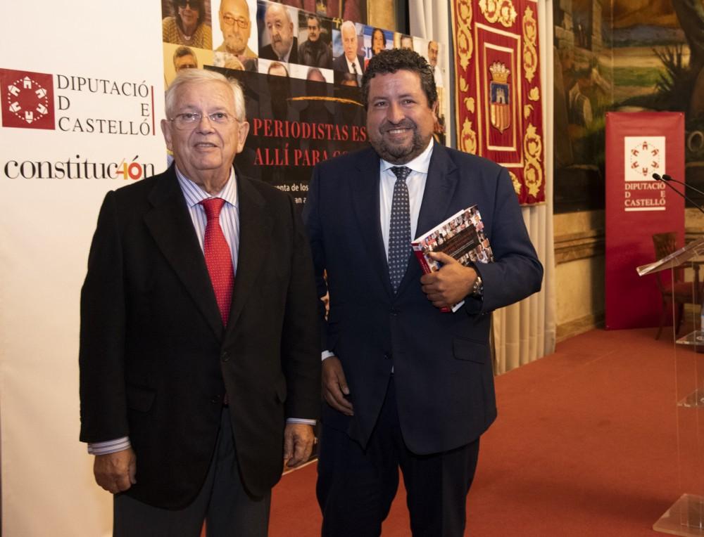 El Gobierno Provincial ha conmemorado el 40 aniversario de la Constitución Española con un encuentro por la libertad y los valores democráticos protagonizado por la conferencia del reconocido periodista Fernando Jáuregui y la presentación del libro 'Los periodistas estuvimos allí para contarlo”. Diputados y senadores castellonenses de todos estos años de democracia, alcaldes, diputados autonómicos de esta legislatura, representantes de la sociedad civil y demás autoridades además de decenas de castellonenses han llenado un Salón de Recepciones que ha visibilizado el reconocimiento de la provincia a los valores de la Constitución.