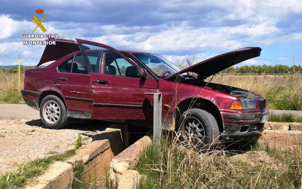 Continuando el seguimiento a distancia, al llegar al término municipal de Vila-real el vehículo huido abandonó la N-340 dirigiéndose por un camino, donde sufre una avería mecánica lo que provocó una gran humareda, dejándolo abandonado sobre una acequia y dándose a la fuga. Como quiera que la incidencia había sido participada al Centro Operativo de Servicio de la Comandancia de la Guardia Civil de Castellón, las patrullas de servicio iniciaron la búsqueda por los alrededores del vehículo averiado, dando como resultado la localización del mismo, procediendo a su detención tras ofrecer resistencia, tratándose de un varón de 36 años de edad, como supuesto autor de los delitos de desobediencia y resistencia, atentado agente de la autoridad y contra la seguridad del tráfico (conducción temeraria).