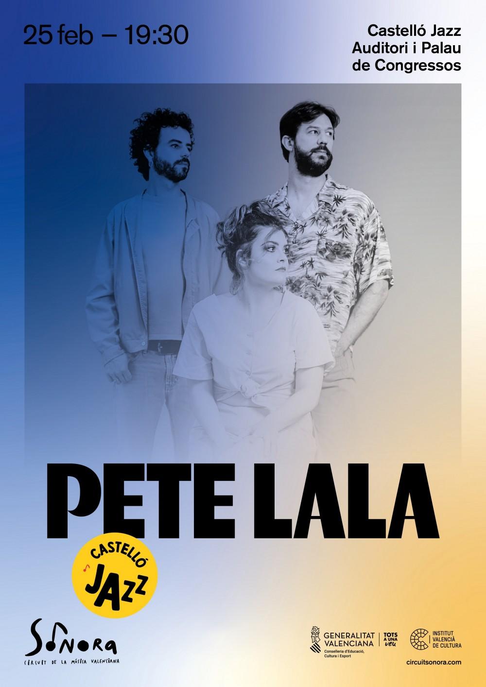 Sonora, el circuit de la música valenciana, organitzat per Cultura de la Generalitat per mitjà de l’Institut Valencià de Cultura, conclou aquest cap de setmana a l’Auditori de Castelló la seua programació de ‘jazz’ amb el concert del grup Pete Lala, que tindrà lloc el divendres 25 de febrer a les 19.30 hores.