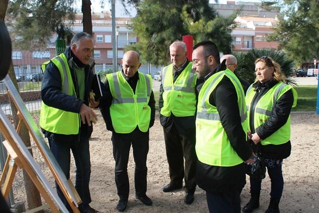 El alcalde, José Benlloch, destaca “la importancia de los barrios” en una visita a los trabajos del parque, acompañado del concejal de Servicios Públicos y la directiva de la asociación de vecinos