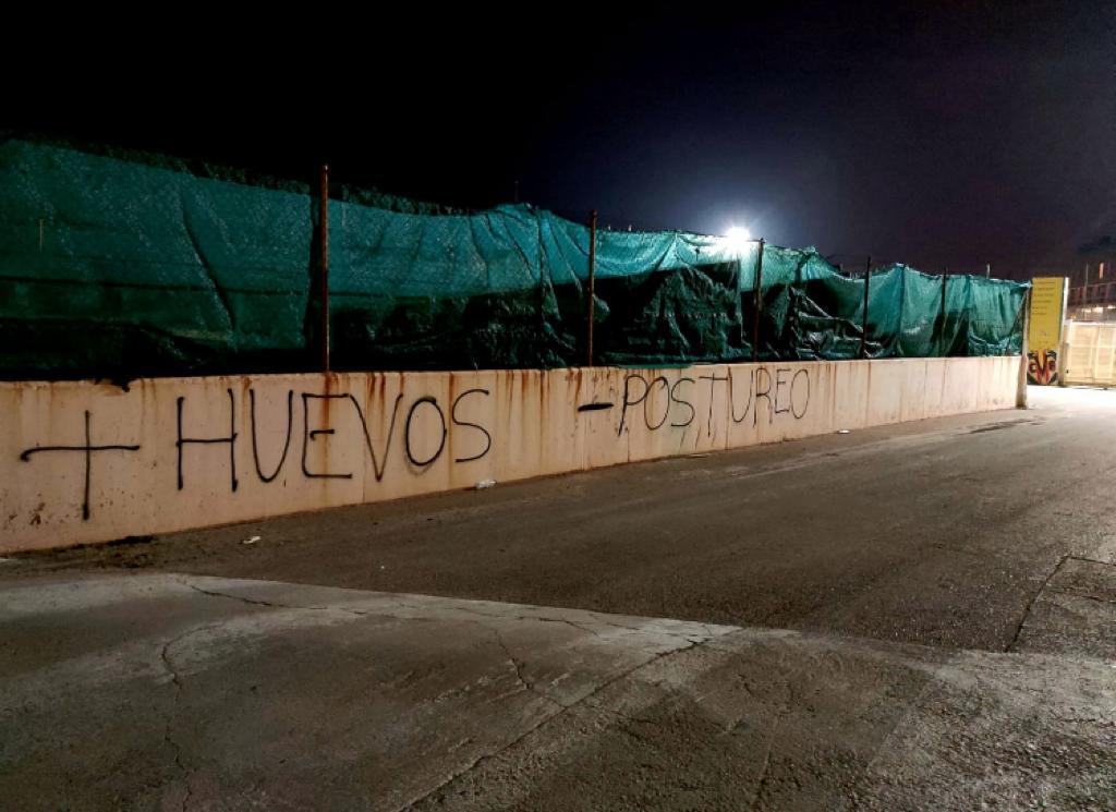 Los operarios del club borraban el texto a media mañana que rezaba "+ huevos, - postureo"